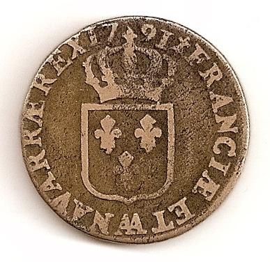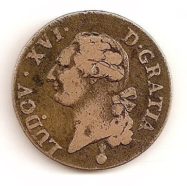 sol à l'écu ( Bronze ) - RoyalesWM n° 26171791Atelier : Metz13.09 gr. - 28 mm A/ LUDOV XVI D GRATIA Tête de Louis XVI à gauche, les cheveux noués par un ruban LUDOV XVI D GRATIA : Louis XVI par la grâce de Dieu R/ FRANCIÆ ET NAVARRÆ. REXÉcu de France couronné. FRANCIÆ ET NAVARRÆ. REX : Roi de France et de NavarreCollection : arendilRef : C.2194 - G.350 - Dr.612 - Dy.1714 - Br.3C Provenance : 58