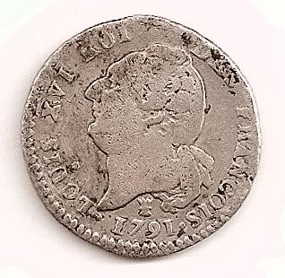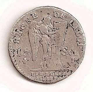 quinze sols au génie ( Argent ) - Modernes (1789 à nos jours)WM n° 26301791 - 3 de la libertéAtelier : Limoges4.74 gr. - 22 mm A/ LOUIS XVI ROI DES FRANÇOIS 1791Tête à gauche de Louis XVI, les cheveux noués par un ruban sur la nuque R/ REGNE DE LA LOI ; L'AN 3 DE LA LIBERTÉGénie gravant la Constitution posée sur un autel à droiteCollection : arendilRef : C.2243 - Dy.1721 - Br.17A - R.40/10Provenance : 58type "françois", 2ème semestre, 4.218.160 exemplaires pour l'année entière