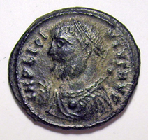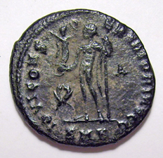 Follis o AE3 ( Bronce ) - Bajo Imperio RomanoWM n° 2808317-320Atelier : Cyzicus3 gr. - 19 mm A/ IMP LICINIVS AVGBusto laureado a izquierda de Licinio, vestido con manto imperial y portando globo, cetro y lienzo circense o R/ IOVI CONSERVATORI AVGGJupiter estante a izquierda portando cetro y pequeña Victoria sobre globo, la cual alza una guirnalda en actitud de coronarle. Letra A (indicando la 1ª oficina) a la derecha y láurea a la izquierda.Collection : OSKARINHO30Ref : RIC VII Cyzicus 9