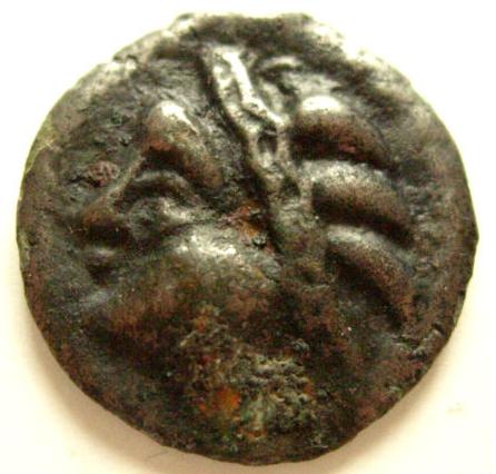 Potin à la tête d'indien ( Potin ) - GauloiseWM n° 323575-50 AC.Atelier : 3.5 gr. - 18 mm A/ AnépigrapheProfil diadémé à gauche, dont la chevelure est indiquée par trois mèches et le cou par des tirets obliques. R/ AnépigrapheSanglier aux soies hérissées à droite ; en dessous, un cercle flanqué de deux annelets. Collection privéeRef :