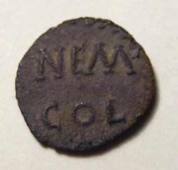 Obole NEM COL ( -- ) - GauloiseWM n° 46544-42 avjcAtelier : nîmes0.3 gr. - 9 mm A/ anépigraphetête casquée et barbue à droite R/ NEM COLNEM COL sur deux lignes en couronne de laurierCollection : wisigothRef : depeyrot 143Provenance : 30