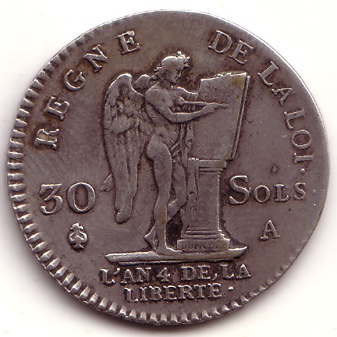 R/ REGNE DE LA LOI // 30 SOLS // L´AN 4 DE LA LIBERTE