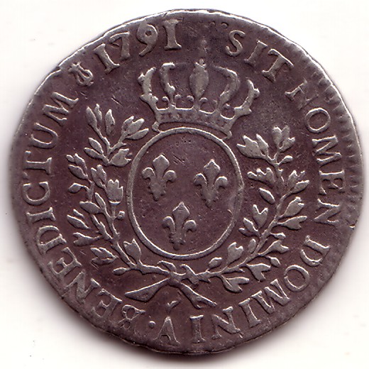 1/2 écu au buste habillé ( Argent ) - RoyalesWM n° 47671791Atelier : Paris13.31 gr. - 32 mm A/ LUD.XVI.D.G.FR.ET NAV.REX.Buste de Louis XVI à gauche R/ SIT NOMEN DOMINI A. BENEDICTUM 1791Ecu de France couronné entre deux branches d´olivier liées au basCollection privéeRef : Dr. 618