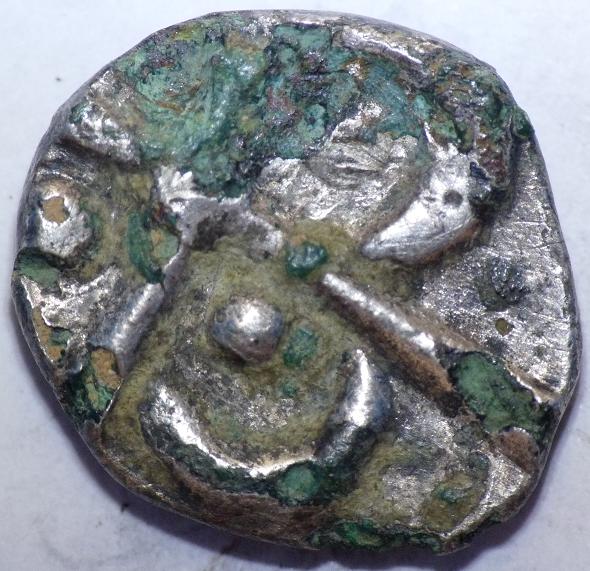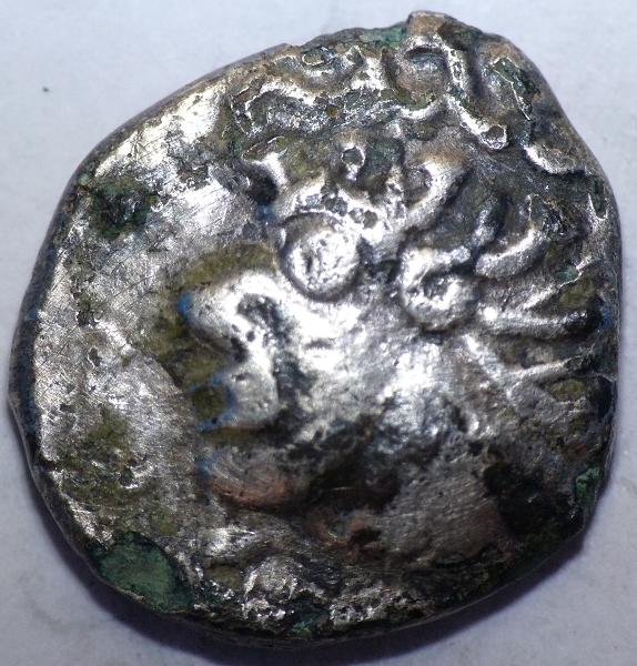 Drachme à la tête négroïde ( Argent (fourrée) ) - GauloiseWM n° 5309Ier siècle AV. JC.Atelier : Nîmes1.7 gr. - 13 mm A/ AnépigraphetTêe négroïde à gauche, la chevelure représentée par un rang d' esses reposant sur un rang d' épis en forme de V R/ AnépigrapheCroix bouletée au centre, formée de quatre cantons ornés chacun d' une lunule : annelet au 1er canton, globule au 2e, 3e et 4e cantons.Collection privéeRef : Provenance : 34