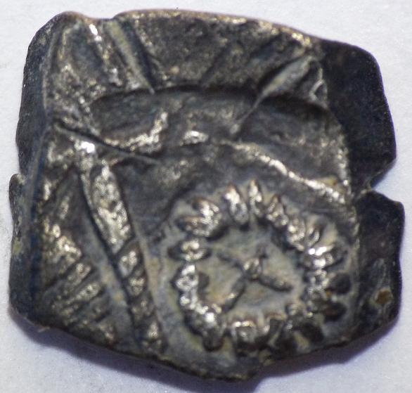Drachme Goutrens au torque ( Argent ) - GauloiseWM n° 5313Ier s. av. J-CAtelier : Goutrens ? (Aveyron)2 gr. - 14 mm A/ AnépigrapheTête à gauche, chevelure en esses (ondulations). R/ AnépigrapheCroix. Rouelle dans le premier et quatrième canton, torque dans le second, hache dans le troisième.Collection privéeRef : Lopez VI,1Provenance : 34