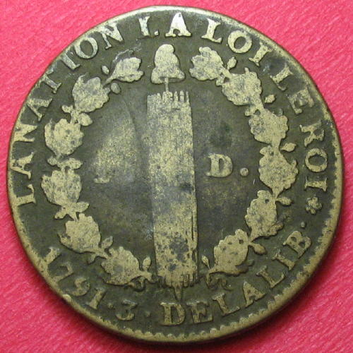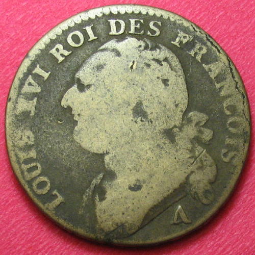 12 deniers ( Cuivre ) - Modernes (1789 à nos jours)WM n° 55061791Atelier : Paris11.9 gr. - 0 mm A/ LOUIS XVI ROI DES FRANCOISBuste de Louis XVI à gauche R/ LA NATION LA LOI LE ROI // 1791.3. DE LA LIB // 12 D.Collection privéeRef : R.-34.2Métal de cloche