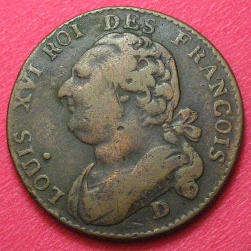 12 deniers ( Cuivre ) - Modernes (1789 à nos jours)WM n° 55111792Atelier : Lyon11.58 gr. - 0 mm A/ LOUIS XVI ROI DES FRANCOISBuste de Louis XVI à gauche R/ LA NATION LA LOI LE ROICollection privéeRef : R.-34.43Point sous de U de Louis pour le second semestre, variété sans cédille