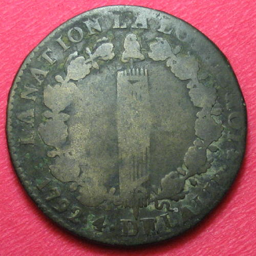 12 deniers ( Cuivre ) - Modernes (1789 à nos jours)WM n° 55141792Atelier : Paris11.54 gr. - 0 mm A/ LOUIS XVI ROI DES FRANCOISBuste de Louis XVI à gauche R/ LA NATION LA LOI LE ROI // 1792 .4. DE LA LIB // 12 D.Collection privéeRef : R.-34.32Exemplaire en métal de cloche