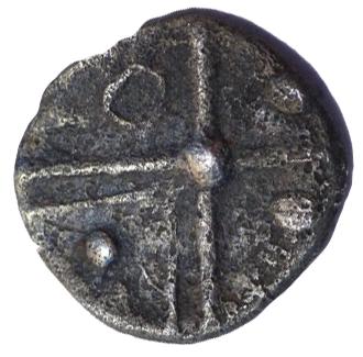 Obole ( Courant ) - GauloiseWM n° 608Ier s. av. J-CAtelier : ?0.45 gr. - 5 mm A/ AnépigrapheTête à gauche R/ AnépigrapheCroix. Annelet dans le premier canton, point dans le second et quatrième. Deux traits perpendiculaires avec point dans le troisième canton.Collection privéeRef : Provenance : 34