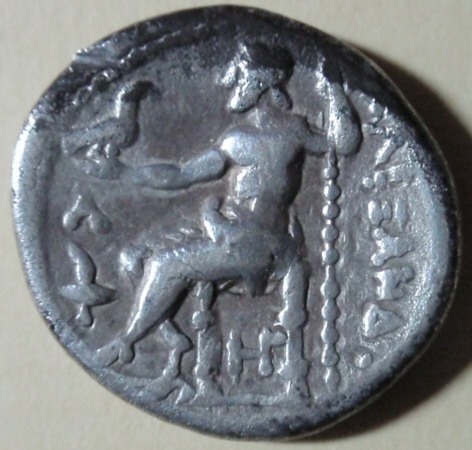 Tetradracma ( Plata ) - GriegaWM n° 6144310-290 a. C.Atelier : Amphipolis17.02 gr. - 0 mm A/ Anepígrafa.Cabeza de Alejandro con Leonté afigiado como Herakles a derecha. R/ ALEJANDROYZeus entronizado a izquierda, delante antorcha y letra, así como debajo del trono.Collection : PatriciaRef : Price 445