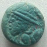 Bronze MATUGIINOS ( Bronze ) - GauloiseWM n° 7852Atelier : 2.65 gr. - 0 mm A/ MATUGIINOSBuste à gauche, tête casquée avec un torque. Légende devant le visage. R/ AnépigrapheCheval au galop à gauche, un oiseau posé sur le dos. Annelet inscrit dans un cercle perlé sous le cheval avec un poisson en dessous.Collection privéeRef : Provenance : 54