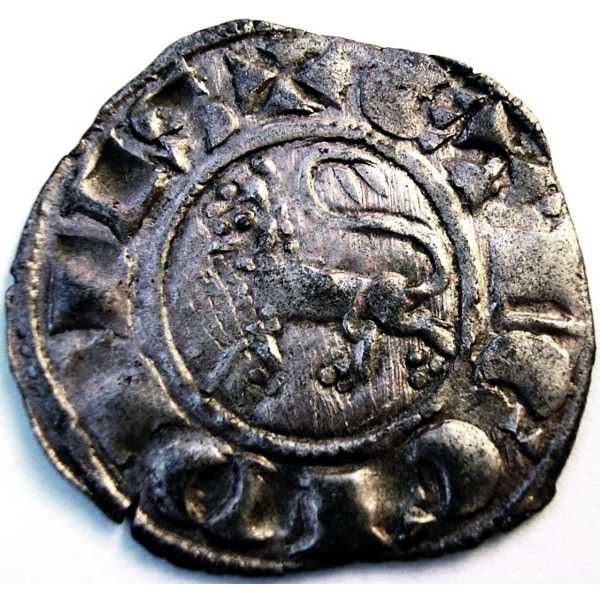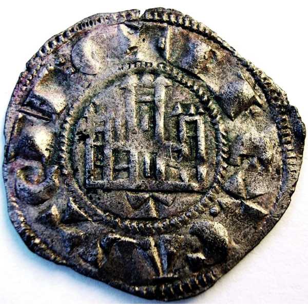 Dinero ( Vellón ) - MedievalWM n° 9039Emisión de 1297Atelier : Toledo0.9 gr. - 19 mm A/ + F REX CASTELLECastillo con tres torres dentro de gráfila circular, debajo marca de ceca: T R/ + ET LEGIONISLeon a izquierda dentro de gráfila circular.Collection privéeRef : A. Roma nº 215.3 A. Burgos nº 267A (Ed. 80) Cayón nº 1166Tanto Álvarez Burgos como Cayón denominan esta moneda como Pepión.