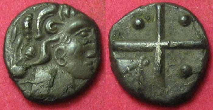 Croix cantonnée d'un point en 1,2 et 4, hache pleine en 3