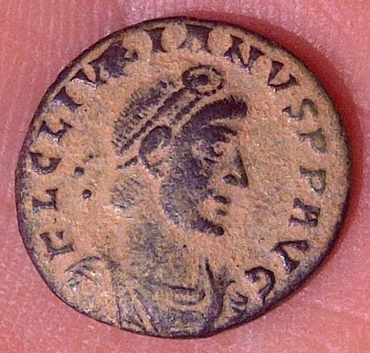 AE4 ( Bronze ) - Bajo Imperio RomanoWM n° 9748361-363 d.C.Atelier : Roma0 gr. - 12 mm A/ FL CL IVLIANVS P P AVGBusto drapeado a derecha de Juliano II con coraza y diadema de perlas. R/ VOTA PVBLICAIsis estante a izquierda sobre carruaje sagrado portando sitro y sosteniendo las riendas acompañada por Anubis portando rama en su mano derecha.Collection privéeRef : ¿RIC VIII Rome 502 var?Provenance : Cliquez ici