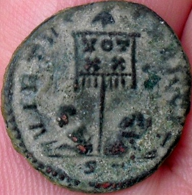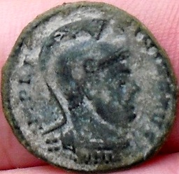 Follis o AE3 ( Bronze ) - Bajo Imperio RomanoWM n° 9972319-320 d. C.Atelier : Ticinum0 gr. - 18 mm A/ IMP LI-CINIVS AVGBusto de Licinio I a derecha, con casco y coraza. R/ VIRTVS EXERCITEstandarte con la inscripción VOT XX, dos cautivos sedentes. Exergo: STCollection privéeRef : RIC VII Ticinum 116Provenance : Cliquez ici